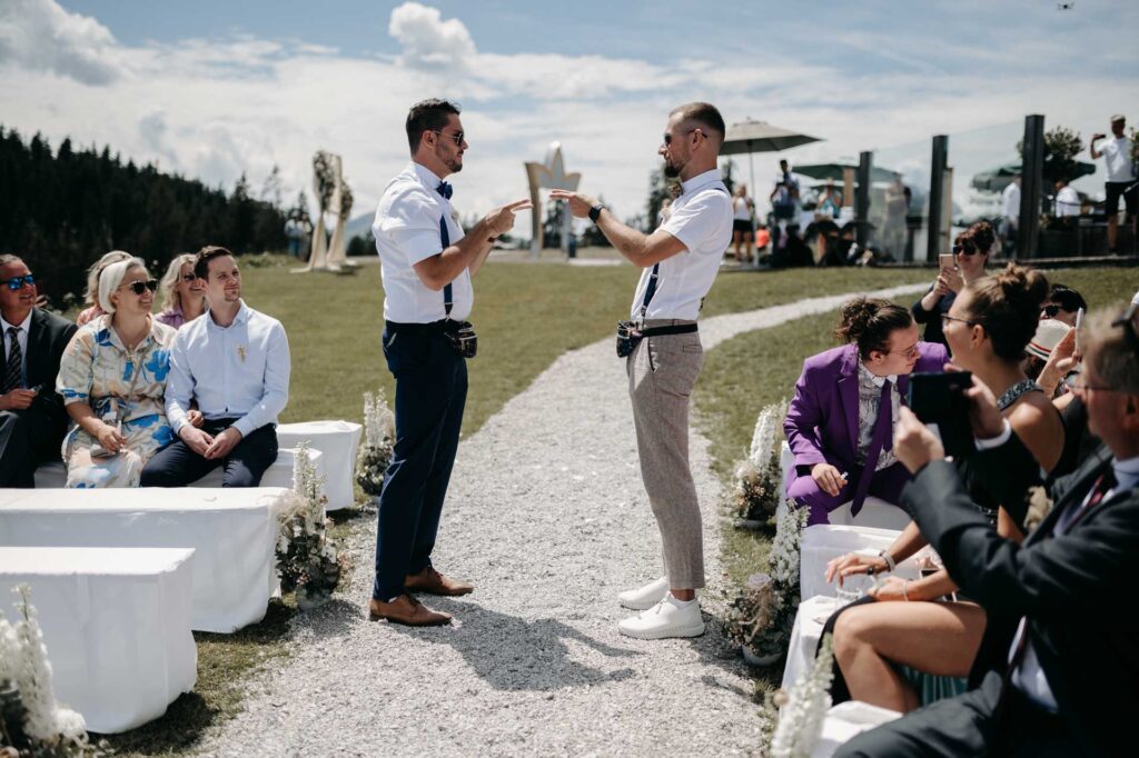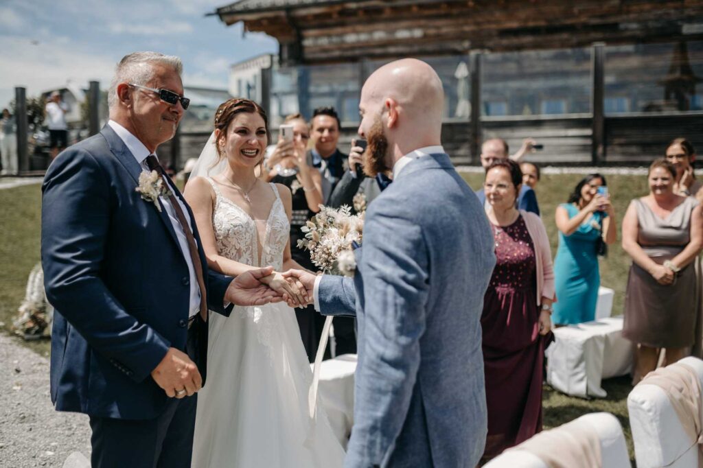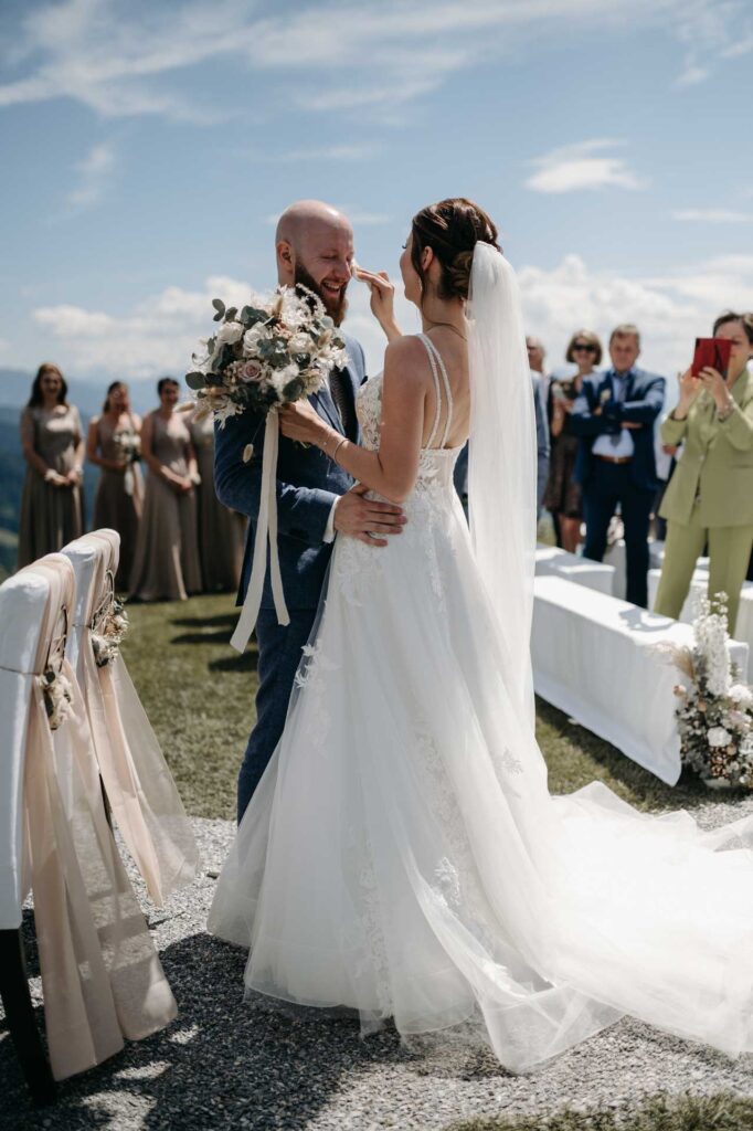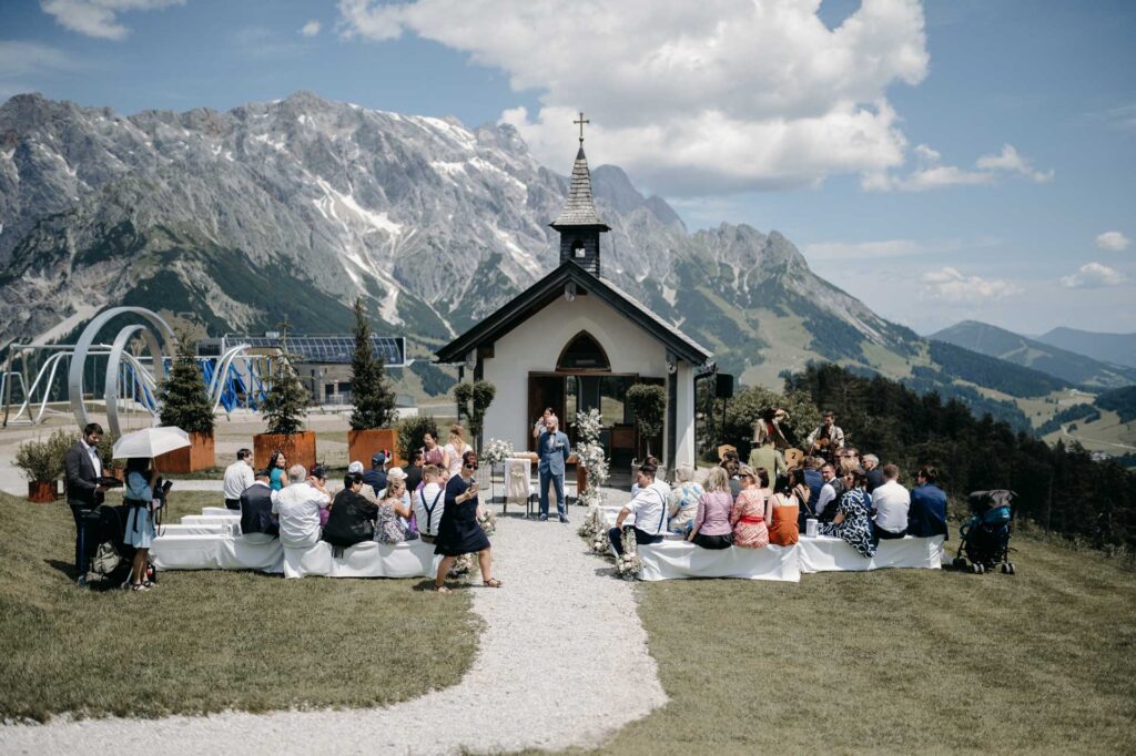 Eine Hochzeit auf der Steinbockalm bietet eine idyllische und naturnahe Atmosphäre inmitten der österreichischen Alpen. Mit atemberaubender Landschaft als Kulisse wird dieser besondere Tag zu einem unvergesslichen Erlebnis für Brautpaar und Gäste.