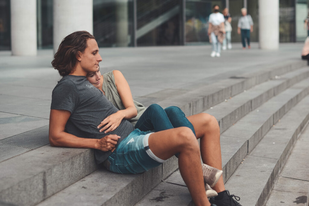 Einfach mal miteinander Spaß haben und kuscheln. Dieses süße Pärchen war so mutig und hat einfach mitten in der Stadt bei jeder Idee von mir mitgemacht. Ein Traum für Fotografen. Isi und Raphael sind zwei Volleyballer, die unsterblich in einander und den gemeinsamen Sport verliebt sind. Interessen und Hobbys in der Beziehung zu teilen ist sichtbar etwas sehr Wertvolles.